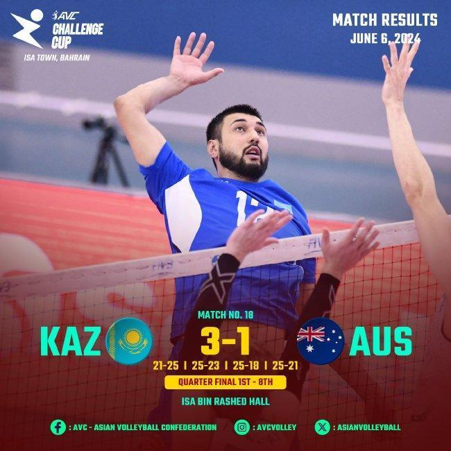哈萨克斯坦3-1胜澳大利亚(21-25、25-23、25-18、25-21)