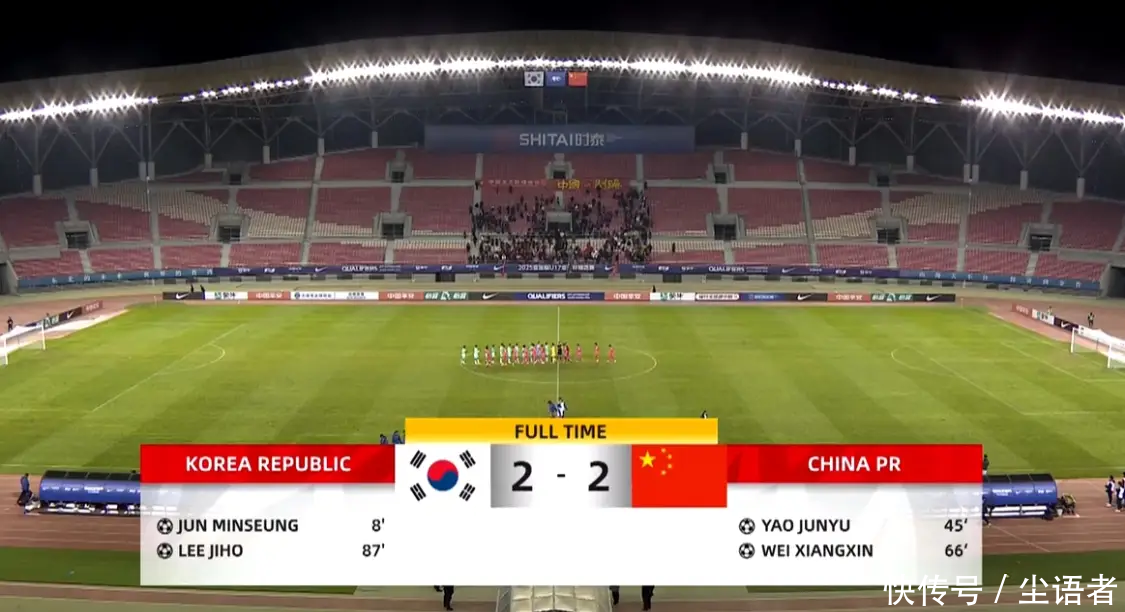 点击输入图片边幅(最多30字)比赛运转后,国少队占据着场上的上风。不外,先取得进球的却是韩国队。开场没多久,韩国队垄断一次前场恣意球的契机,由9号全敃昇乱战破门先进一球。第45分钟,国少中路打出精妙合作,姚俊宇灵性插上从容推射穿了对方的大小门!1-1!国少扳平了比分,进球后姚俊宇和队友还作念出了孙兴慜的秀雅性庆祝手脚。下半场,两边各获取一个点球,均罚进。这么,全场比赛贬抑,国少队以2:2战平了韩国队。由于韩国队此前与其他队比赛中获取净胜球较多,最终中国队在净胜球少于韩国队,在同分的情况下,排行第二。不外,中国队是第二名内部得益最佳的,抬头晋级到正赛。